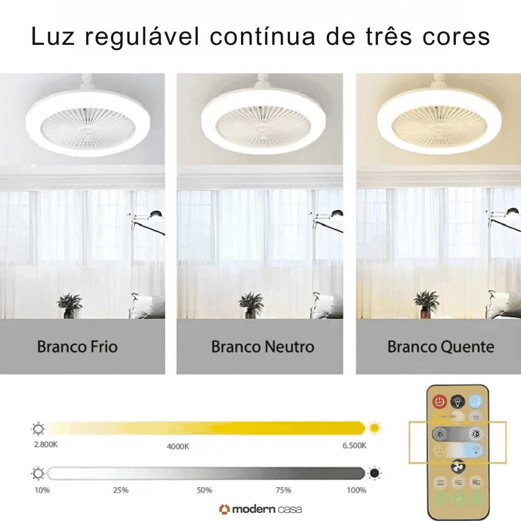Três Velocidades de Ventilação e Três Modos de Iluminação: