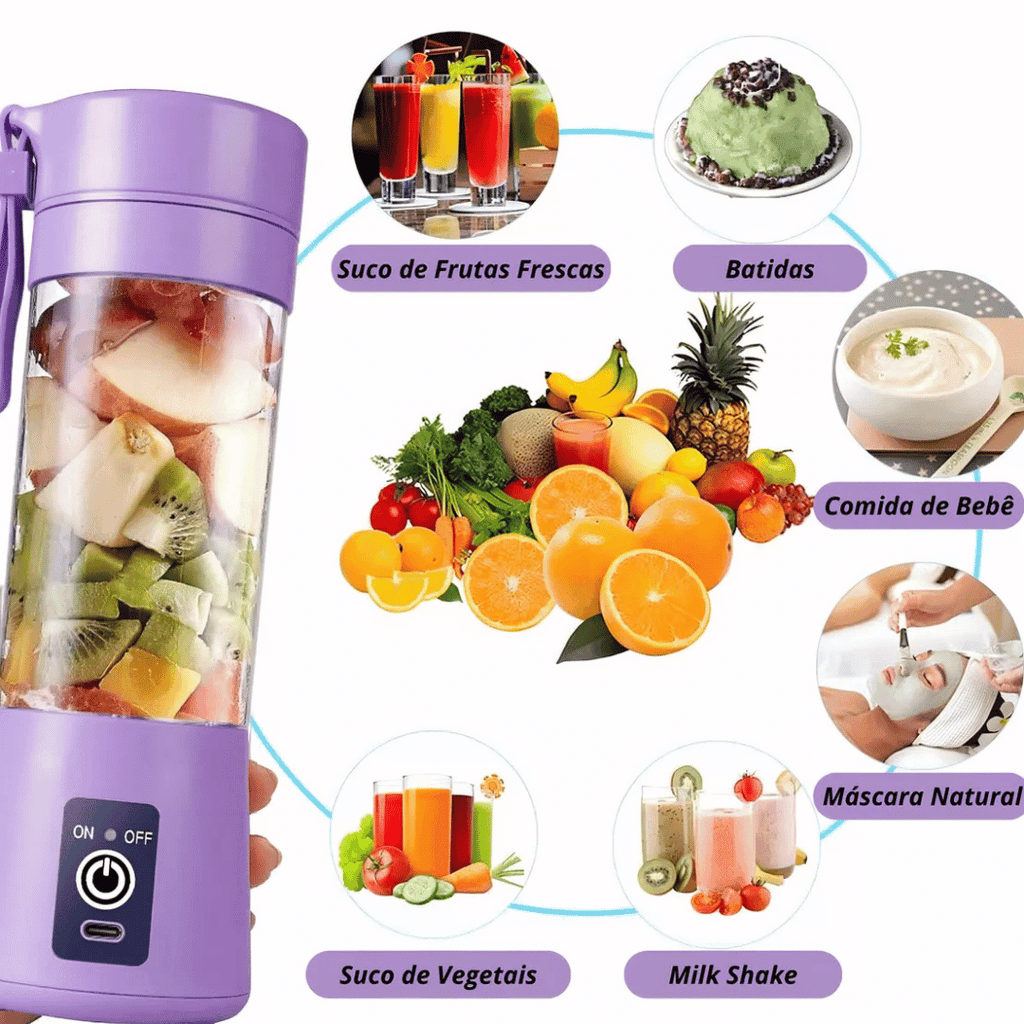 Compacto e leve, este liquidificador portátil é perfeito para preparar smoothies, shakes e sucos frescos em qualquer lugar.
