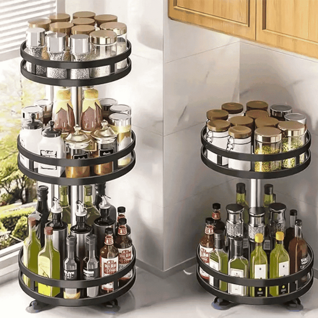 Transforme sua Organização com Estilo e Praticidade! Diga adeus à desordem com o Organizador De Condimentos e Porta Temperos Rotativo.