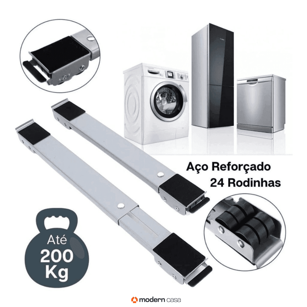 O Suporte C/Rodinhas Base Ajustável não é apenas funcional, mas também é durável e robusto. Fabricado com Aço Carbono resistente, Plástico e EVA, este suporte é projetado para resistir ao peso de qualquer tipo de móvel ou eletrodoméstico, suportando até 200kg.